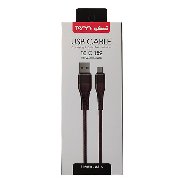 کابل USB به Type-C تسکو مدل TC C189 با طول 1 متر جهت شارژ دستگاه های مجهز به درگاه Type-C و انتقال دیتا در آن ها استفاده می شود. این کابل با طول 1 متر و روکش کنفی، کیفیت خوب و دوام بالایی دارد. شدت جریان این کابل 2.1 آمپر می باشد.