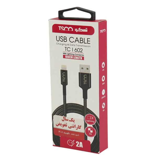 کابل USB به لایتنینگ تسکو مدل TC i602طول 1متر tsco-tc-i602-usb-to-lightening-cable