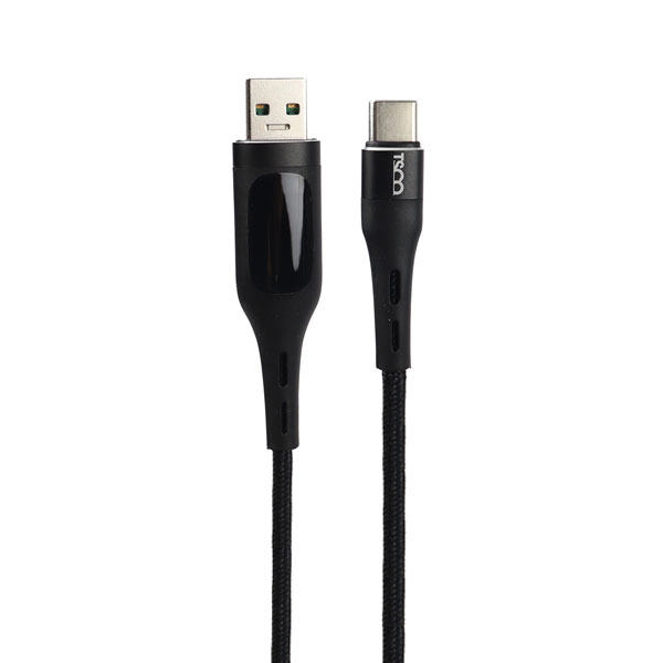 کانکتور تایپ سی فلزی، طول کابل ۱۰۰ سانتی متر و روکش کابل از جنس نایلون بافته شده مقاوم در برابر خمیدگی و پارگی دارای نمایشگر ولتاز و جریان، شدت جریان عبوری حداکثر ۵ آمپر و مقاوم در برابر نوسانات ولتاژ و جریان برق