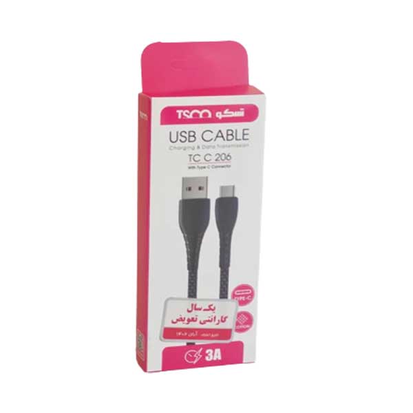 کابل USB به تایپ سی تسکو مدل TC C206طول 1متر tsco-tcc-206-usb-to-type-c-cable