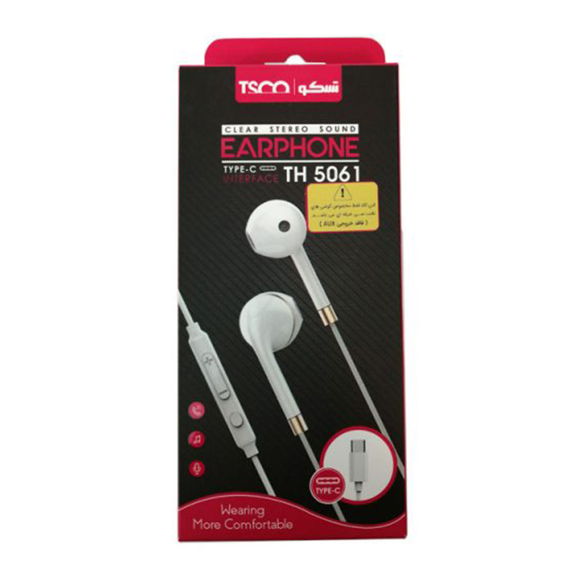 هندزفری تسکو مدل TH 5061 مخصوص گوشی های با درگاه Type-C است که می توانید آن را از طریق درگاه Type-C به موبایل خود متصل کنید. طول کابل این محصول 1.2 متر بوده و بر روی کابل آن کلید مدیریت میزان صدا و میکروفون قرار دارد. این هندزفری با حساسیت 95 دسی بل از کیفیت صدای مطلوبی برخوردار است