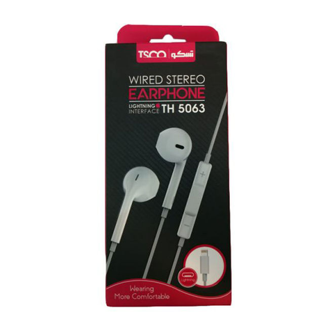 هندزفری تسکو مدل TH 5063 مناسب دستگاه هایی است که به درگاه لایتنینگ مجهز هستند. این محصول دارای کانکتور لایتنینگ بوده و براحتی در موبایل های آیفون استفاده می شود. بر روی کابل این محصول، میکروفون و کلیدهای کنترل صدا تعبیه شده و صدای خروجی آن کیفیت مطلوبی دارد.