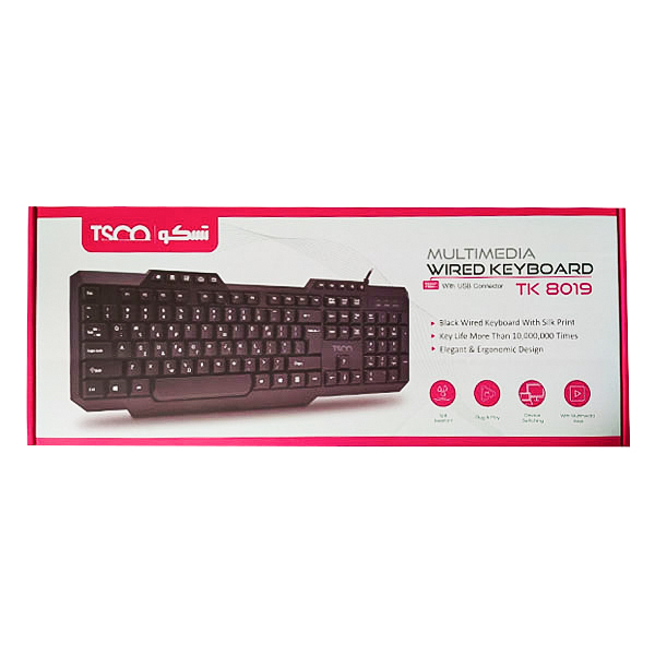 کیبورد تسکو مدل TK 8019 به صورت سیمی از طریق پورت USB متصل شده و کابلی به طول 1.8 متر دارد. این کیبورد دارای 114 عدد کلید با حروف فارسی است که امکان تایپ راحت و سریع را برای شما فراهم می کند.