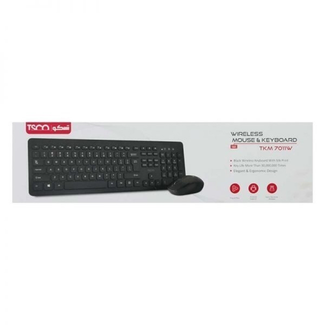 کیبورد و ماوس بی سیم تسکو مدل TKM 7011w یکی از بهترین و جذاب ترین ماوس و کیبوردهایی است که می توانید در منزل یا محل کار از آن استفاده نمایید. این ماوس و کیبورد توسط یک دانگل USB به کامپیوتر متصل شده و هر یک از آن ها توسط یک باتری قلمی کار می کنند.