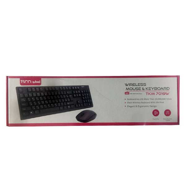 شرکت ایرانی تسکو که در حوزه تکنولوژی و خرید عمده لوازم جانبی کامپیوتر فعالیت می کند پک ماوس و کیبورد TKM 7019W را بصورت بی سیم و با اتصال دانگل USB طراحی و تولید کرده است.