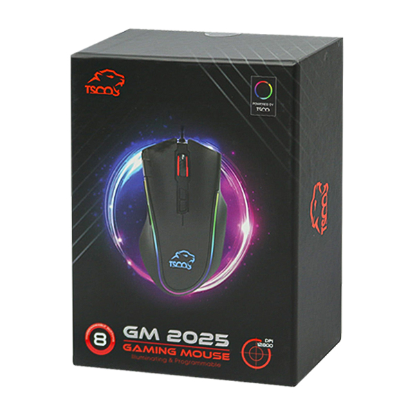 ماوس تسکو مدل TM 2025GA جز ماوس های مخصوص بازی است که سیمی و از طریق دانگل USB متصل می شود. این ماوس تسکو مدل TM 2025GA در ابعاد 128*70*40 میلی متر با وزن 125 گرم از جنس ABS و کابل آن از جنس کنفی با طول 1.8 متر ساخته شده است که 8 کلید (کلیک راست و چپ – اسکرول – Fire – Backward – Forward – کم و زیاد کردن DPI) دارد. دقت این ماوس MAX 12800 DPI است و حسگر آن اپتیکال می باشد.