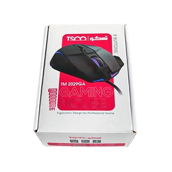 ماوس تسکو مدل TM 2029GA جز ماوس های مخصوص بازی است که سیمی و از طریق پورت USB متصل می شود. این ماوس تسکو مدل TM 2029GA در ابعاد 129*78*43 میلی متر با وزن 120 گرم از جنس ABS و کابل آن از جنس کنفی با طول 1.8 متر ساخته شده است که 8 کلید (کلیک راست و چپ – اسکرول – Fire – Backward – Forward – کم و زیاد کردن DPI) دارد. دقت این ماوس 1200/1600/2400/3200/4800/7200 DPI می باشد که این DPI قابل تغییر است. فرکانس این ماوس 7000 fps و نرخ نمونه برداری آن 125Hz می باشد.