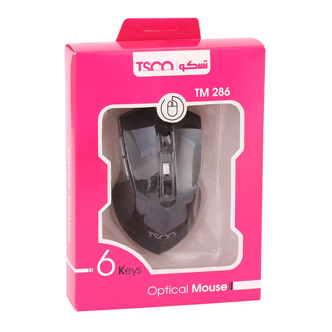 ماوس TSCO مدل TM286 به وسیله سیم و USB2.0 به کامپیوتر یا لپ تاپ متصل میشود. این ماوس دارای ۶ کلید برای انواع کارها است. طورل کابل این ماوس ۱٫۵ متر و دقت آن در حدود ۱۲۰۰DPI است. این ماوس دارای قابلیت کار با هردو دست را نیز داراست و تا ۳ میلیون کلیک را ساپورت میکند.
