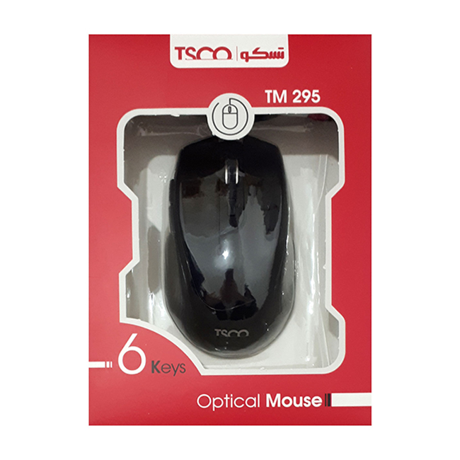 نوع اتصال ماوس تسکو مدل TM 295 به صورت سیمی و از طریق پورت USB می باشد. حسگر این ماوس اپتیکال، دقت آن ۱۶۰۰dpi و دارای ۶ عدد کلید است. شما می توانید تسط یک کلید بین دقت های ۸۰۰، ۱۲۰۰ و ۱۶۰۰dpi سوئیچ کنید.