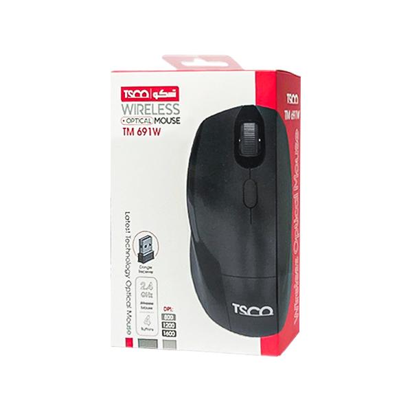 ماوس تسکو مدل TM 691W جز ماوس های بی سیم است و از طریق دانگل USB متصل می شود. این ماوس تسکو مدل TM 691W در ابعاد 95*62*37 میلی متر با وزن 53 گرم از جنس ABS ساخته شده است که 4 کلید دارد و تا فاصله ی 8 متر پشتیبانی می شود. دقت این ماوس بی سیم 800 / 1200 / 1600 DPI که این DPI قابل تغییر است. فرکانس این ماوس 2.4 GHz و نرخ نمونه برداری آن 250 Hz می باشد.