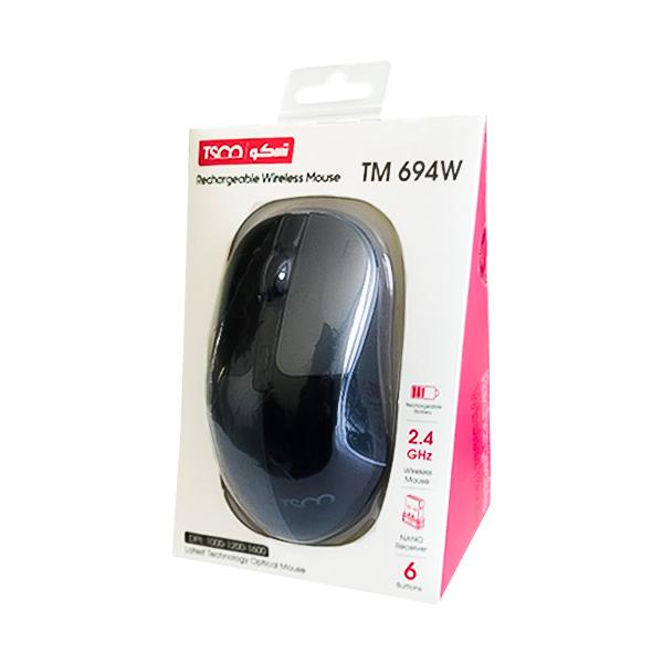 ماوس تسکو مدل TM 694W جز ماوس های بی سیم است و از طریق دانگل USB متصل می شود. این ماوس تسکو مدل TM 694W در ابعاد 122*67*35 میلی متر با وزن 79 گرم از جنس ABS ساخته شده است که 6 کلید دارد و تا فاصله ی 8 متر پشتیبانی می شود. دقت این ماوس بی سیم 1000 / 1200 / 1600 DPI که این DPI قابل تغییر است. فرکانس این ماوس 2.4 GHz و نرخ نمونه برداری آن 250 Hz می باشد.
