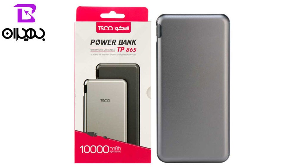 شارژر همراه تسکو مدل TP 865 یک باتری لیتیوم پلیمری با ظرفیت ۱۰۰۰۰ میلی آمپر ساعت دارد که با دو عدد درگاه خروجی USB با شدت جریان های خروجی ۱٫۰ و ۲٫۱ آمپر، امکان شارژ همزمان دو دستگاه را به شما می دهد. ولتاژ ورودی و خروجی این پاوربانک ۵٫۰ ولت و شدت جریان ورودی آن ۲٫۰ آمپر است. این محصول ۹ تا ۱۱ ساعت زمان برای شارژ شدن نیاز دارد و میزان شارژ آن توسط نشانگر LED تعبیه شذه روی آن نمایش داده می شود.