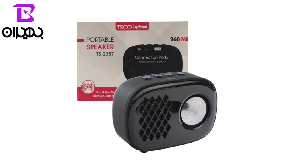 اسپیکر بلوتوثی تسکو مدل TS 2357 یک اسپیکر سبک با کیفیت صدای قابل قبول و مناسب است که یک گزینه بسیار مناسب برای گوش دادن به موسیقی در محیط های مختلف است. این اسپیکر توسط پورت USB , شیار کارت حافظه و بلوتوث نسخه 4.2 به دستگاه های مورد نظر شما متصل شده و دارای رادیو نیز می باشد. منبع تغذیه این محصول یک باتری لیتیوم پلیمری با ظرفیت 400 میلی آمپر ساعت می باشد.