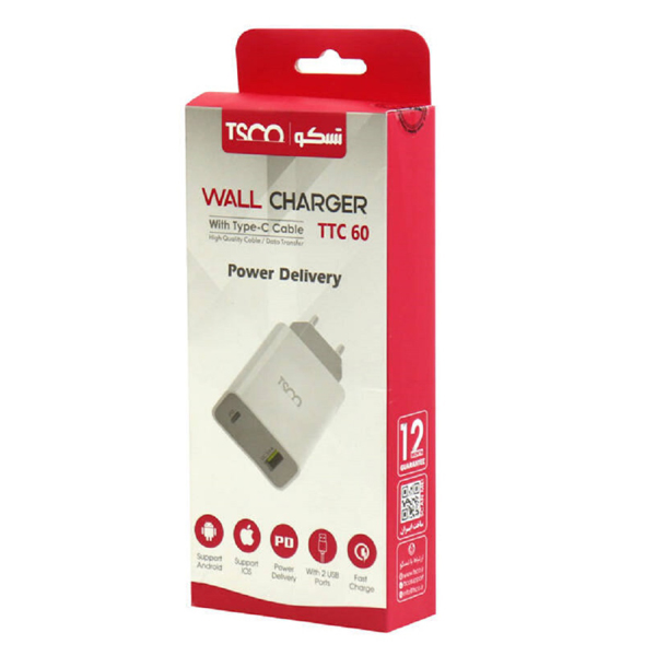 شارژر دیواری تسکو مدل TTC60 PD27W+3 tsco-ttc60-charger
