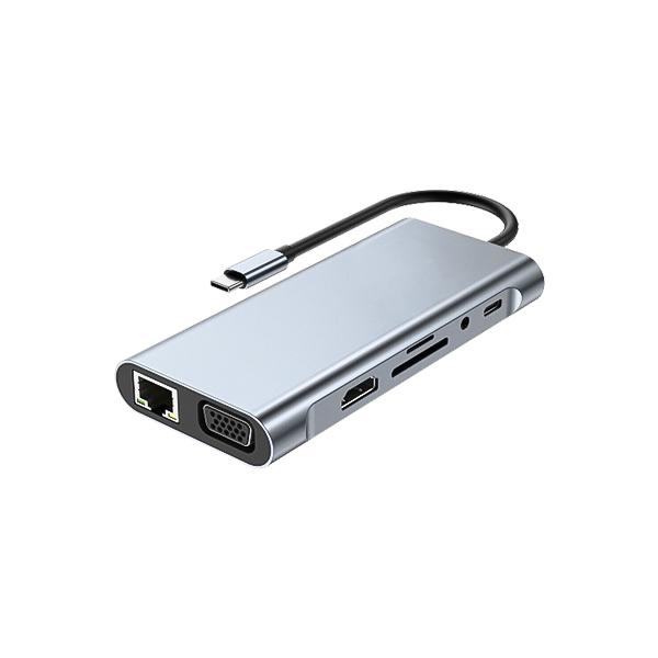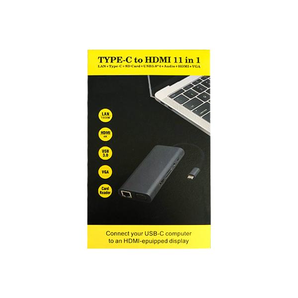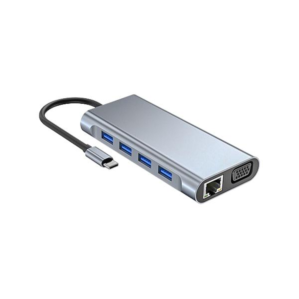 هاب تایپ سی به USB-C /LAN/VGA/HDMI /TF/SD /Audio/4USB3.0 type-c-to-hdmi-11-in-1