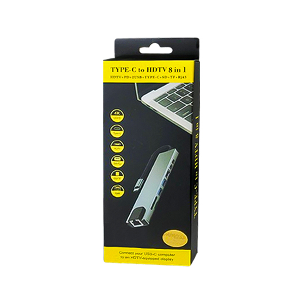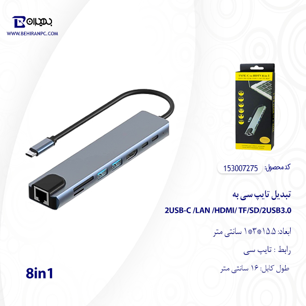 تبدیل 8in1 تایپ سی به 2USB-C /LAN /HDMI/ TF/SD/2USB3.0 عدد