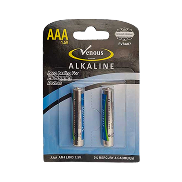 باتری نیم قلمی آلکالاین ونوسمدل PVBA07 با ولتاژ 1.5 ولت در بسته بندی 2 عددی عرضه می شود. از این باتری نیم قلمی آلکالاین ونوس مدل PVBA07 برای کیبوردها، موس های بیسیم، برخی از دوربین ها و… نیز استفاده میشود.