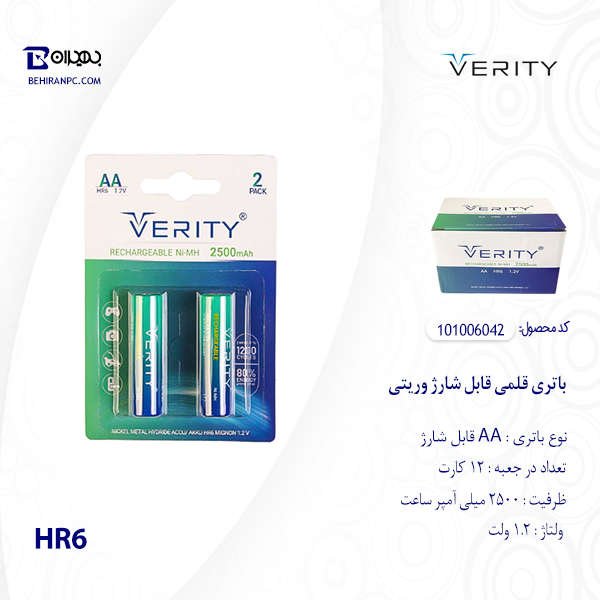 باتری قابل شارژ قلمی 2500MAH وریتی مدل HR6 verity-2500mah-aa-rechargeable-battery