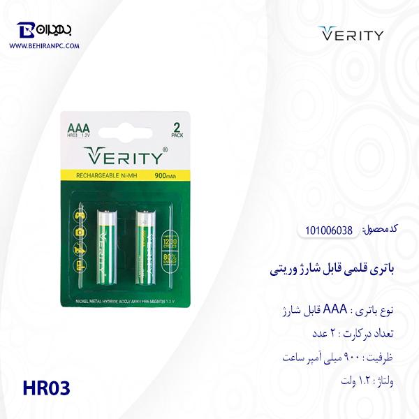 باتری نیم قلمی قابل شارژ 900mAh وریتی مدل HR03