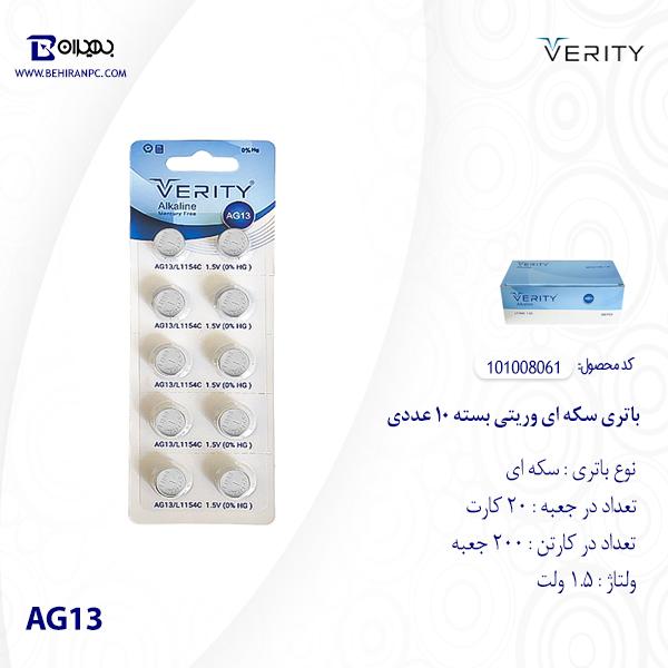 باتری سکه ای وریتی مدل AG13 بسته 10 عددی