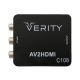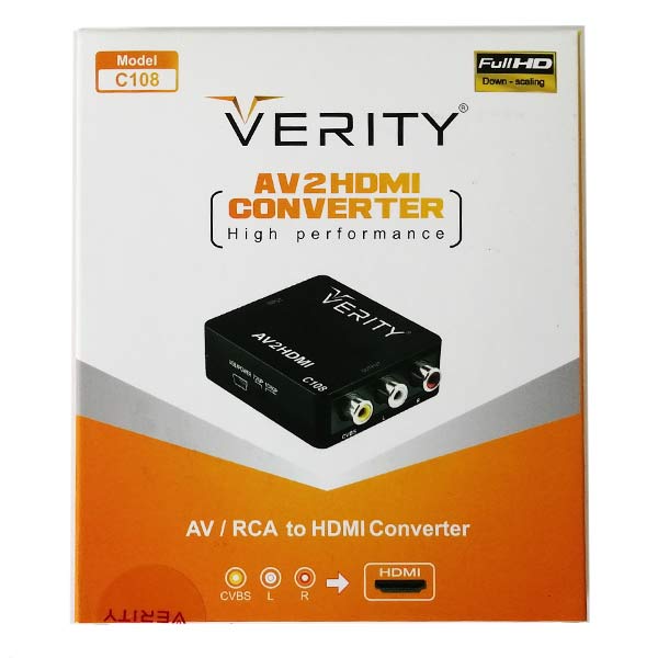 تبدیل AV به HDMI وریتی مدل C108 برای اتصال دستگاه های دارای پورت AV به دستگاه های دارای پورت HDMI مورد استفاده قرار می گیرد. به عنوان مثال زمانی که می خواهید یک دی وی دی پلیر که مجهز به پورت AV است به تلویزیون با پورت HDMI متصل کنید، می توانید از این تبدیل بهره ببرید. این تبدیل تا رزولوشن 1080 را پشتیبانی می کند و مجهز به ورودی های AV – RCA – CVBS -VCR می باشد.