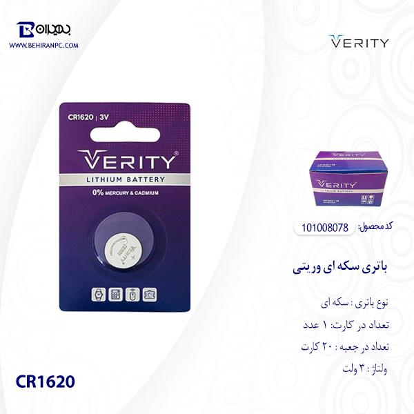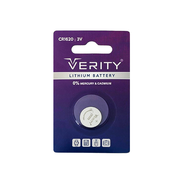 باتری سکهای CR1620 از نوع باتریهای لیتیومی است که به دلیل اندازه کوچک و ولتاژ 3 ولتی خود در بسیاری از دستگاههای الکترونیکی کوچک استفاده میشود. این باتریها به صورت تک عددی در کارتهای جداگانه بستهبندی میشوند و معمولاً در جعبههای 20 عددی توسط برندهایی مانند وریتی (Verity) عرضه میگردند.
