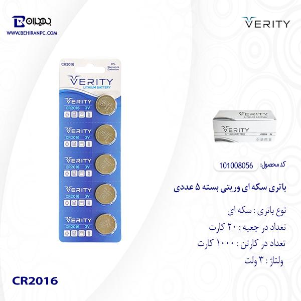 باتری سکه ای وریتی مدل CR2016 بسته 5 عددی