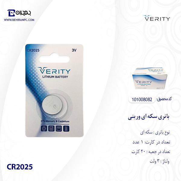 باتری سکهای CR2025 وریتی با ولتاژ 3 ولت، یکی از انواع محبوب و پرکاربرد باتریهای سکهای است. این باتریها به دلیل طراحی فشرده و قدرت بالای خود در انواع دستگاههای الکترونیکی کوچک و قابل حمل به کار میروند. باتری CR2025 به صورت تک عددی در کارتهای جداگانه بستهبندی شده و معمولاً در جعبههای 20 عددی عرضه میشود.