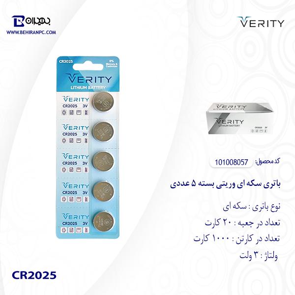 باتری سکه ای وریتی مدل CR2025 بسته 5 عددی