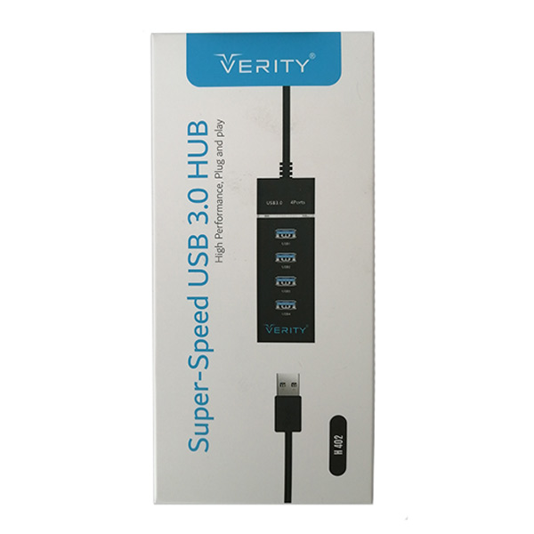 هاب USB3.0 چهار پورت وریتی مدل H-402 امکان اتصال همزمان 4 دستگاه با پورت USB به کامپیوتر را فراهم می کند. اگر می خواهید فلش مموری، پرینتر، کابل موبایل و… را به صورت همزمان به کامپیوتر یا لپ تاپ متصل کنید، این هاب را به شما پیشنهاد می کنیم.