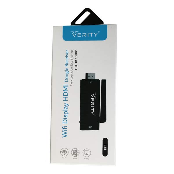 دانگل HDMI و گیرنده wifi وریتی مدل HD11 یک وسیله کوچک است که به راحتی می توانید آن را با خود حمل کنید. با استفاده از این گیرنده HDMI می توانید تصاویر و ویدئوهای موبایل یا تبلت خود را به نمایشگرهای دارای پورت HDMI منتقل نمایید.