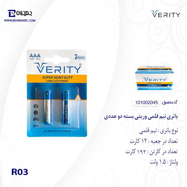 باتری نیم قلمی وریتی مدل R03 بسته 2 عددی
