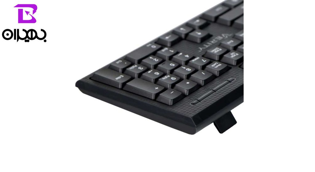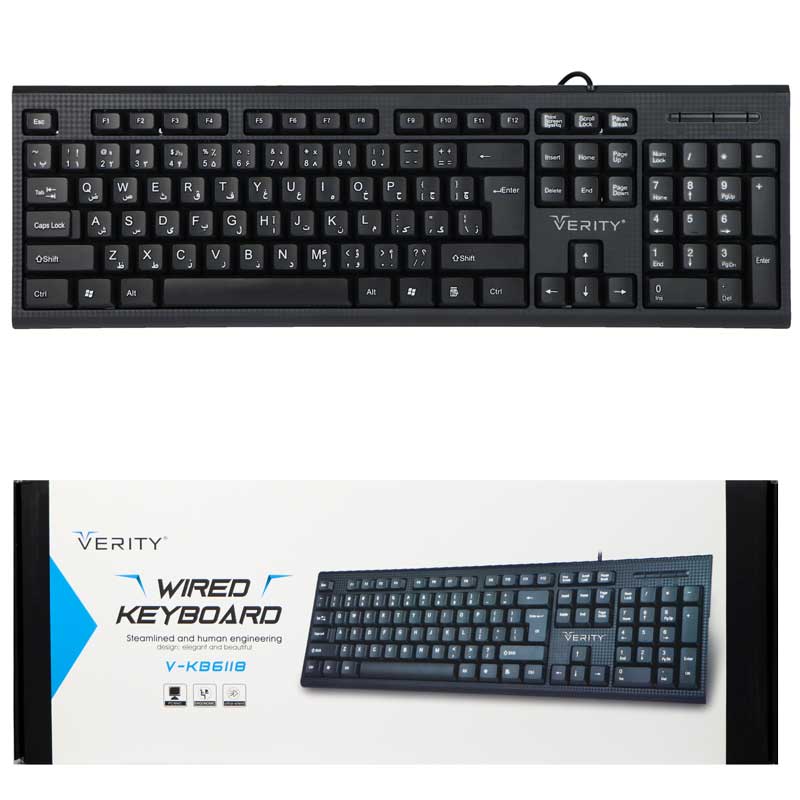 کیبورد وریتی مدل V-KB6118 با تعداد 104 عدد کلید دارای حروف حک شده فارسی می باشد. این کیبورد به صورت باسیم و از طریق درگاه USB به کامپیوتر شما متصل می شود.