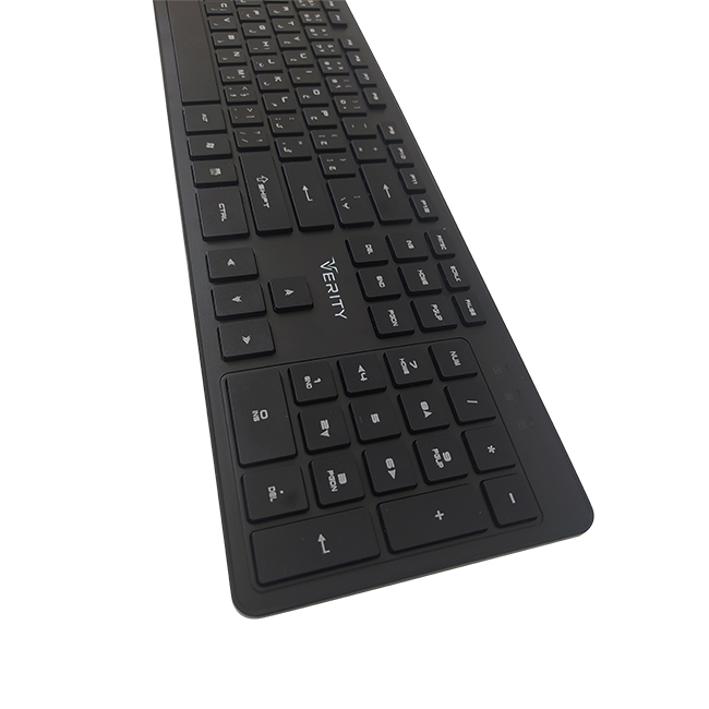 این کیبورد بی سیم از برند وریتی از ولتاژ مصرفی 5 ولت و جریان 100 میلی آمپر بهره می برد و طول عمر 8 میلیون ساعت را داراست.