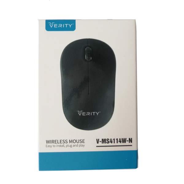 ماوس بیسیم وریتی مدل V-MS4114w از طریق دانگل USB و با برد 10 متر به لپ تاپ یا کامپیوتر متصل می شود. دقت این ماوس 1000dpi و حسگر آن اپتیکال می باشد. یک باتری قلمی به عنوان منبع تغذیه در آن قرار می گیرد.