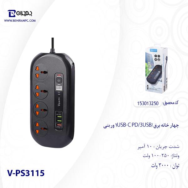 چهار خانه برق/1USB-C PD/3USB وریتی مدل V-PS3115