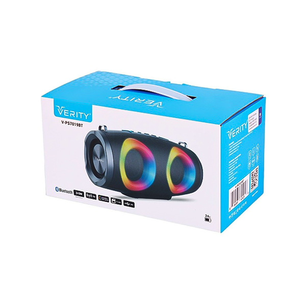 اگر به دنبال یک اسپیکر قابل حمل با طراحی ظریف و صدایی فراتر از انتظار هستید، Verity V-PS7019BT میتواند همراه همیشگی شما باشد. این مدل با وزن تنها ۸۰۰ گرم و ابعاد جعبهی ۲۵ × ۱۲ × ۱۲ سانتیمتر، بهسادگی در کیف یا کولهپشتی قرار میگیرد و برای سفر، فضای باز یا استفاده روزمره انتخابی ایدهآل محسوب میشود.