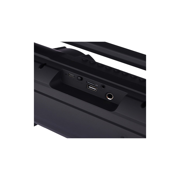 بدنه اسپیکر با ابعاد 320×130×155 میلیمتر ساخته شده و ظاهری مدرن و خوشفرم دارد. این ابعاد به شما اجازه میدهد بدون نگرانی از سنگینی یا حجم زیاد، آن را در سفرها، پیکنیکها و مهمانیهای کوچک همراه داشته باشید. جنس مقاوم بدنه و ساختار مستحکم آن نیز دوام بالایی را تضمین میکند.