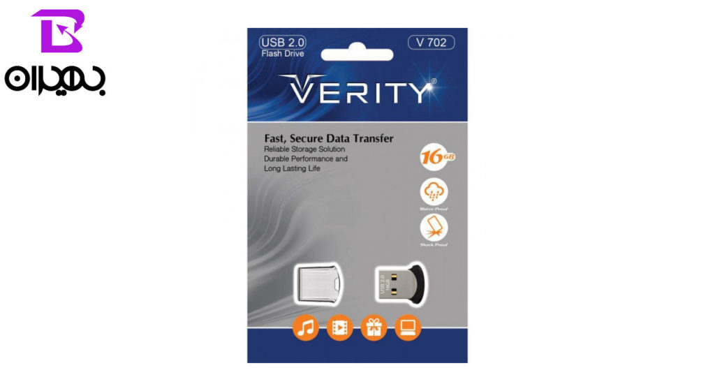 فلش مموری 16G وریتی مدل V702 از پلاستیک سخت ساخته شده و در برابر آب، ضربه، گرد و غبار و شوک و لرزش مقاوم است. رابط این فلش مموری USB2.0 و ظرفیت ذخیره ساز آن 16 گیگابایت می باشد.
