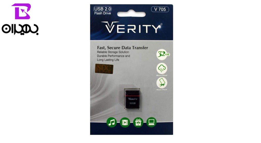 فلش مموری 32G وریتی مدل V705 دارای ظرفیت 32 گیگابایت برای ذخیره اطلاعات شما می باشد. این فلش مموری به گونه ای طراحی و تولید شده که در مقابل آب، ضربه، گرد و غبار و شوک و لرزش مقاوم باشد. درگاه این فلش مموری USB2.0 است.