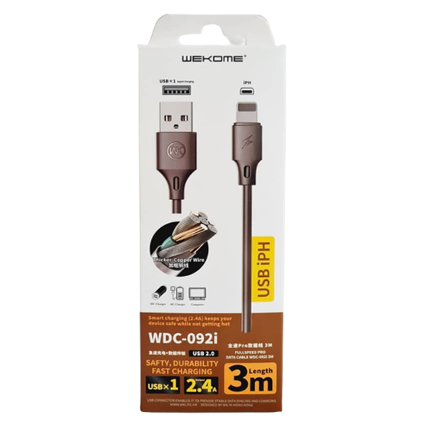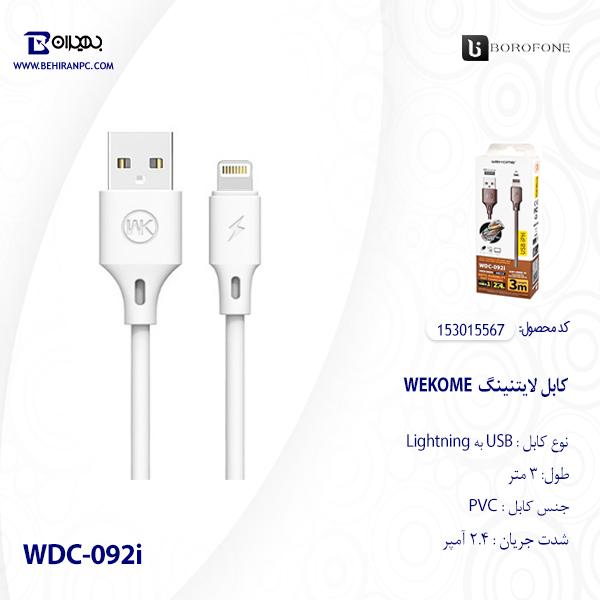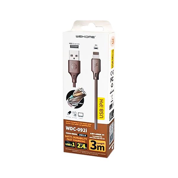 کابل تبدیل USB به لایتنینگ دبلیو کی مدل WDC-092i طول3 متر wekome-wdc-092i-usb-to-litining-cable