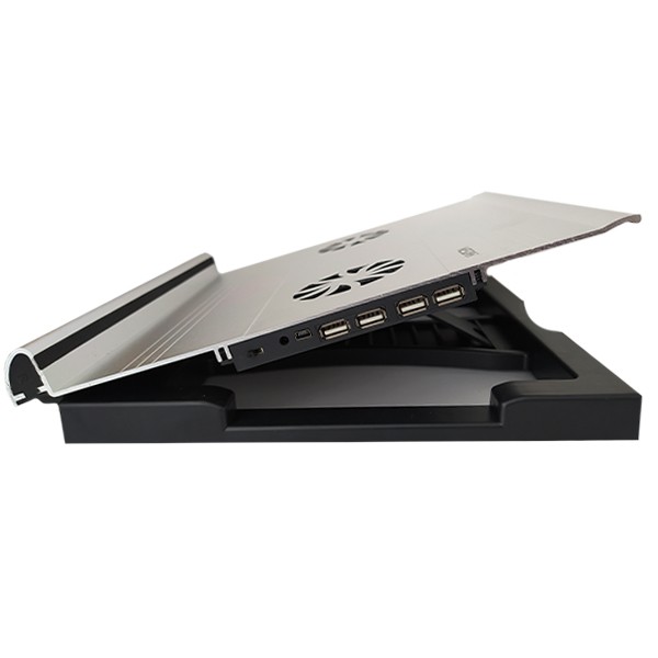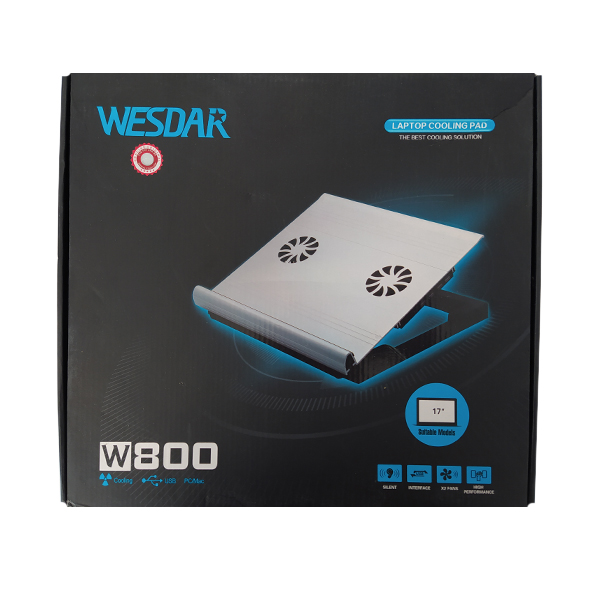 از پایه خنک کننده لپ تاپ وسدار مدل W800 می توانید برای خنک کردن لپ تاپ های بزرگ تا 17 اینچ استفاده کنید. این محصول دارای 2 فن 70*70 میلیمتری است که با لتصال از طریق پورت USB روشن می شوند. این محصول دارای قابلیت تنظیم ارتفاع بوده و شما می توانید زاویه دلخواه خود را برای آن تنظیم کنید. جنس بدنه آن آلمینیوم بوده و دارای 4 پورت USB می باشد.
