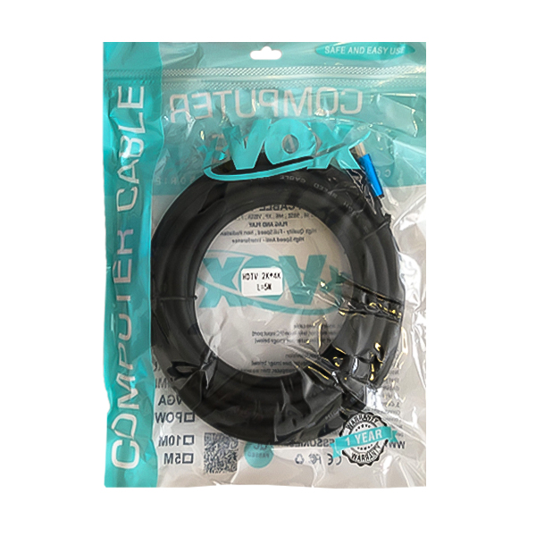 کابلX.VOX HDMI از کانکتور های فلزی و کابلی از جنس PVC با طول 5 متر ساخته شده است که از رزولوشن 4K2K پشتبیانی می کند.