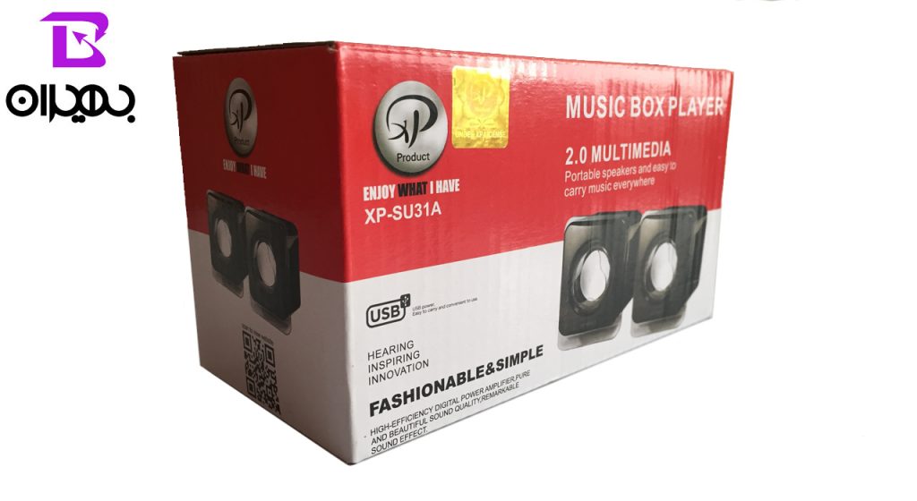 اسپیکر دو تیکه لپ تاپی ایکس پی پروداکت مدل XP-SU31A دارای یک کابل با دو درگاه USB و AUX است که می توانید به راحتی آن را به لپ تاپ متصل کنید. طراحی این محصول زیبا و چشمگیر بوده و وزن کمی دارد. کابل USB در این اسپیکر جهت انتقال برق و کابل AUX در آن جهت انتقال صدا مورد استفاده قرار میگیرد.