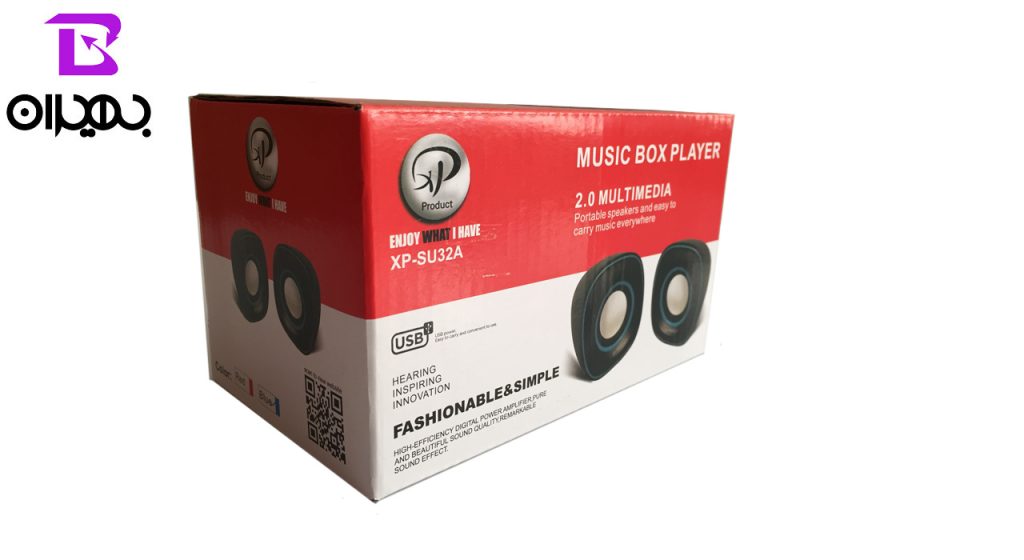 اسپیکر دو تیکه لپ تاپی ایکس پی پروداکت مدل XP-SU32A یک اسپیکر کوچک و سبک با کیفیت صدای قابل قبول است که می توانید به راحتی و با اتصال دو کابل USB و AUX آن را به لپ تاپ خود وصل نمایید. کابل USB در این محصول وظیفه انتقال برق و کابل AUX در آن وظیفه انتقال صدا ار لپ تاپ را بر عهده دارد.