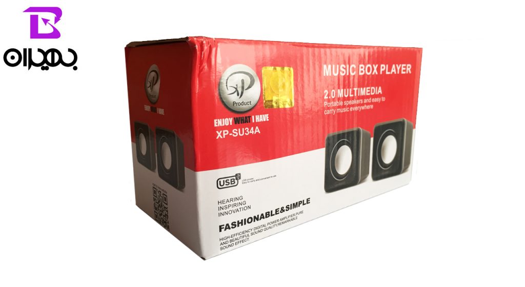 اسپیکر دو تیکه لپ تاپی ایکس پی پروداکت مدل XP-SU34A به صورت سیمی و از طریق درگاه USB و جک 3.5 میلی متری به لپ تاپ متصل شده و از کیفیت صدای بالایی برخوردار است. فرکانس پاسخگویی این محصول 90HZ-20KHZ و حساسیت آن 80 دسی بل است. کابل USB در این اسپیکر جهت انتقال برق و کابل AUX در آن جهت انتقال صدا به کار برده شده است.