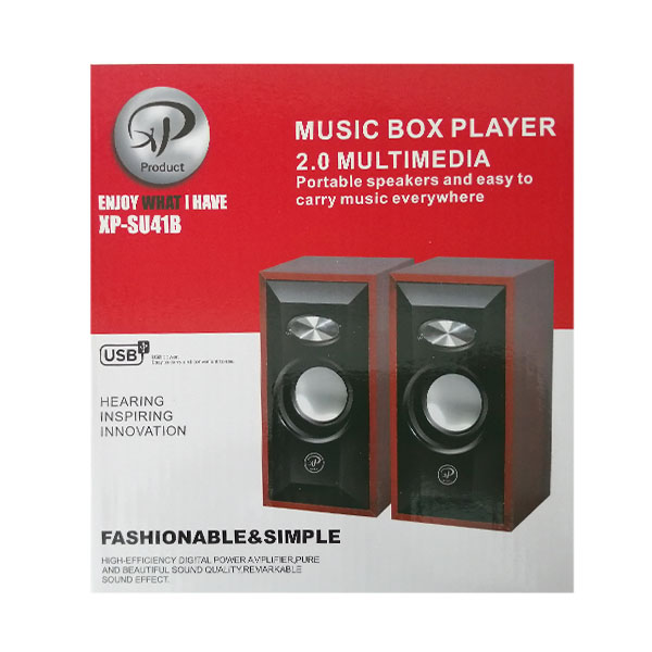 اسپیکر لپ تاپی ایکس پی پروداکت مدل XP-SU41B با اتصال سیمی و از طریق دو کابل AUX و USB به لپ تاپ یا کامپیوتر شما متصل می گردد. پورت جک 3.5 میلیمتری آن جهت انتقال صدا و پورت USB آن برای تأمین انرژی طراحی شده است. فرکانس پاسخگویی این اسپیکر 90-20000 هرتز و امپدانس آن 4 اهم می باشد. از این اسپیکر می توانید برای پخش موسیقی برای مهمانی های خود استفاده کنید از کیفیت صدای فوق العاده آن لذت ببرید.