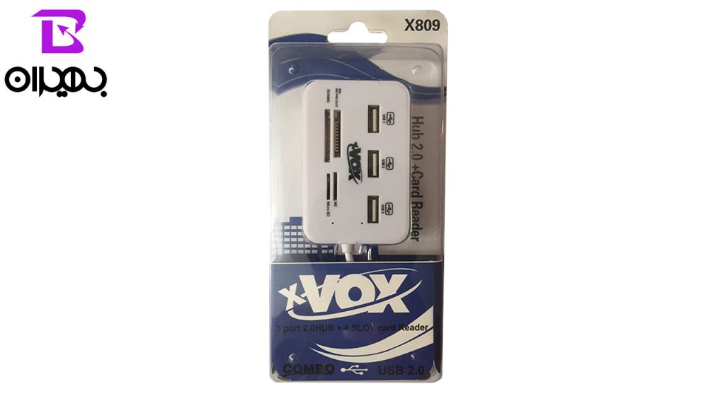 هاب کمبو X-Vox مدل X-809 برای اتصال همزمان چندین USB و کارت حافظه به کامپیوتر یا لپ تاپ شما مورد استفاده قرار می گیرد. دارای 4 عدد پورت USB و شیارهای کارت حافظه SD/MMC، M2، MicroSD و MS PRO DUO می باشد.
